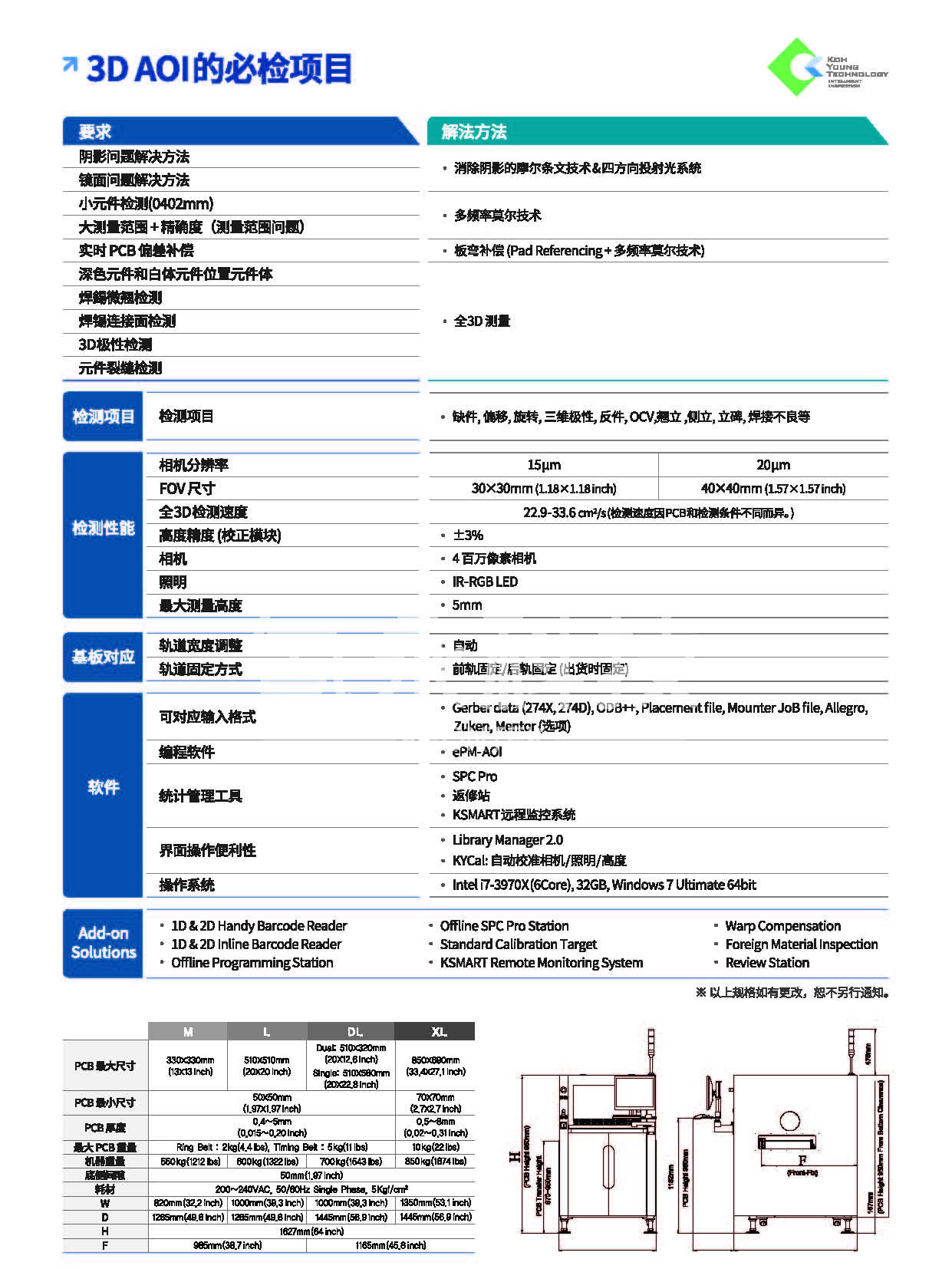 品牌:KOH YOUNG LiTE 3D AOI 性能特點(diǎn): 全3D AOI,克服二維檢測(cè)的缺點(diǎn) 使用4光源投影和多頻率摩爾專利技術(shù)解決陰影 高精度3D焊點(diǎn)檢測(cè)