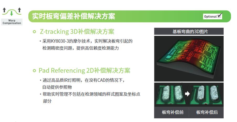 - 提供帶實時 PCB變形補償的精確檢測數據