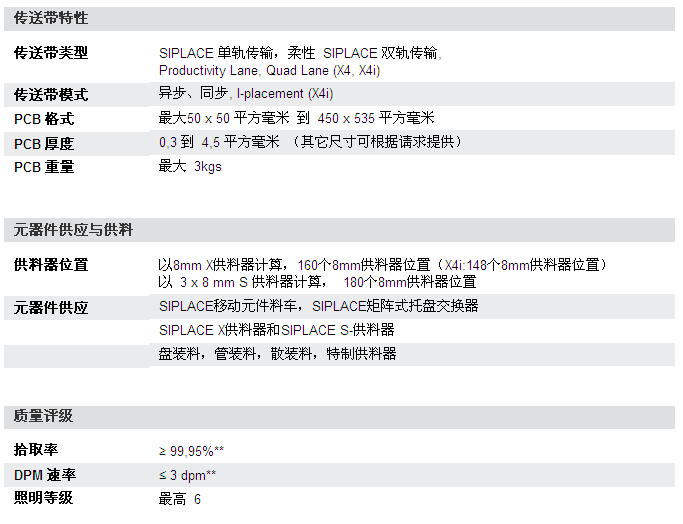 我們的高端平臺SIPLACE 4Xi—實(shí)際性能世界紀(jì)錄保持者,依照IPC標(biāo)準(zhǔn)測試達(dá)到了102,000cph的速度等級,這個速度相當(dāng)于120,000cph的SIPLACE標(biāo)稱速度。從超快的20吸嘴收集貼裝頭和數(shù)字成像系統(tǒng)到i-Placement、 Productivity Lane和Quad Lane等生產(chǎn)理念再到來自SIPLACE專家的頂級服務(wù),這些創(chuàng)新和服務(wù)使SIPLACE X 系列成為高性能方面的終極解決方案。